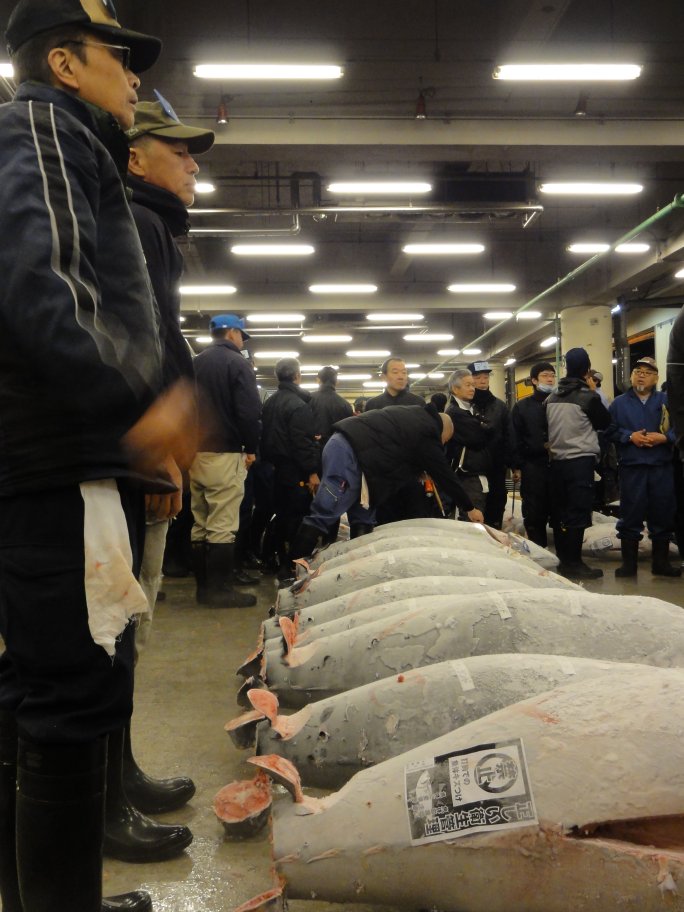 By the time we left at 5 a.m., the rain had yet to let up, so Brian, Tom, Yuki and I hopped in a cab to Tsukiji Market, a fish market. With Yuki’s help translating, we eventually found our way to the tuna auction (becoming soaked in the process of dashing from warehouse to warehouse in the rain), followed by a 1.5-hour wait for breakfast of the best sushi any of us had ever had (despite being frigid in our drenched clothes.